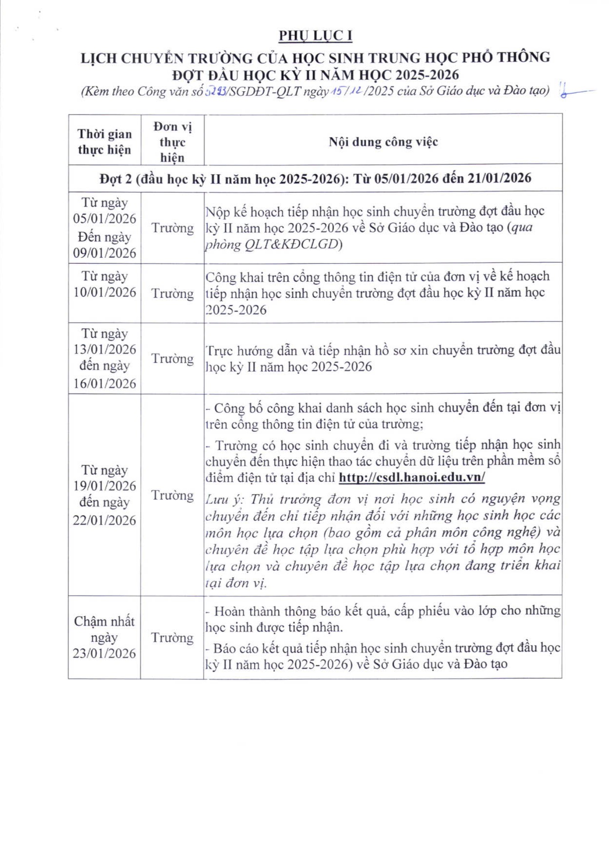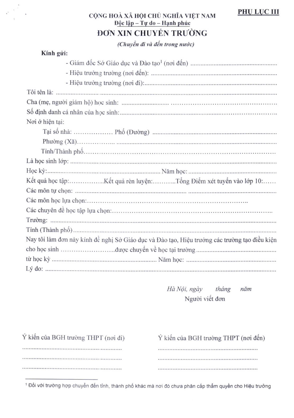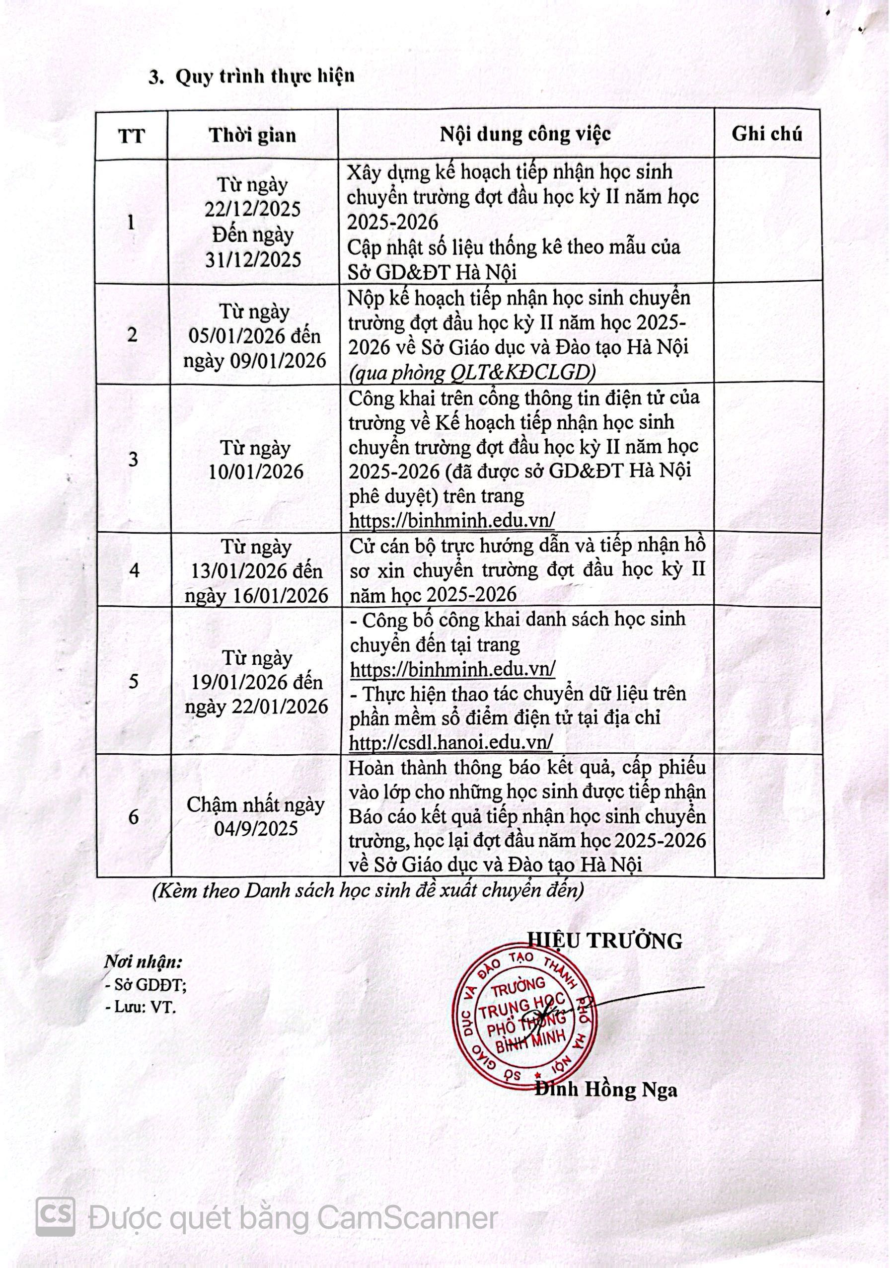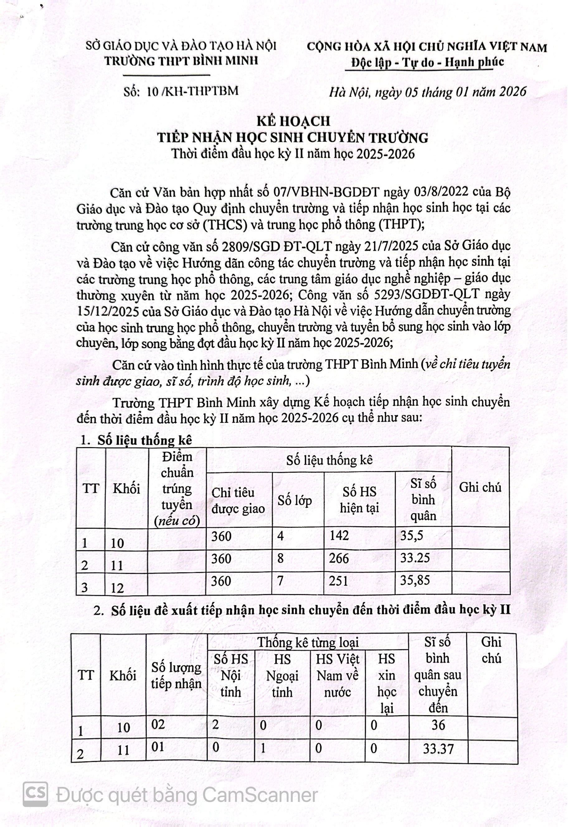 KẾ HOẠCH TIẾP NHẬN HỌC SINH CHUYỂN TRƯỜNG | THPT Bình Minh