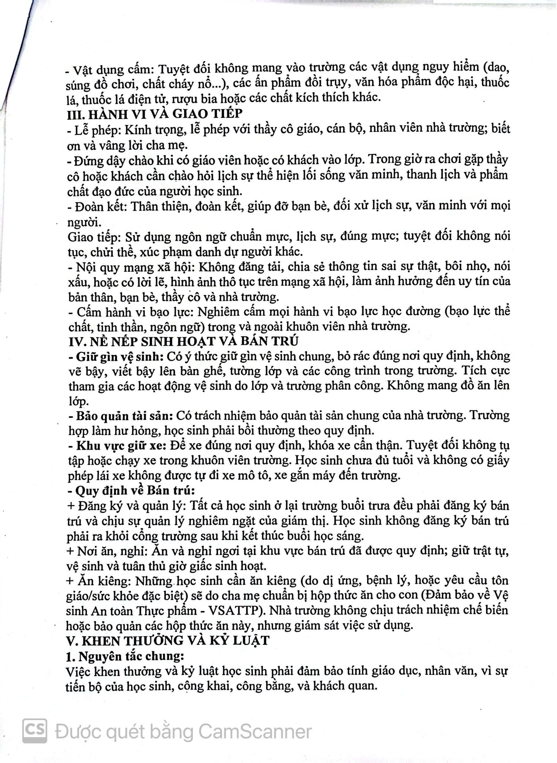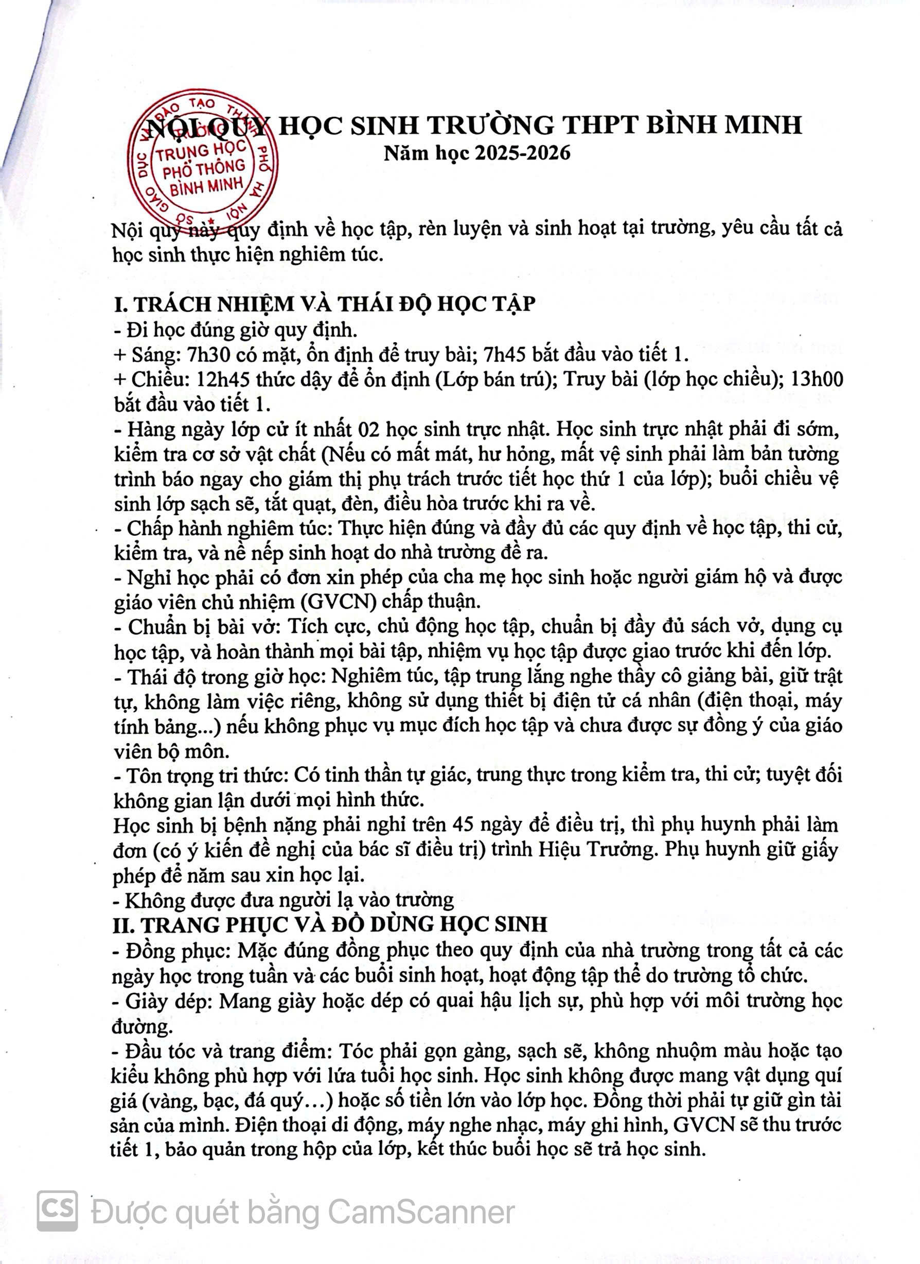 NỘI QUY HỌC SINH NĂM HỌC 2025-2026 | THPT Bình Minh